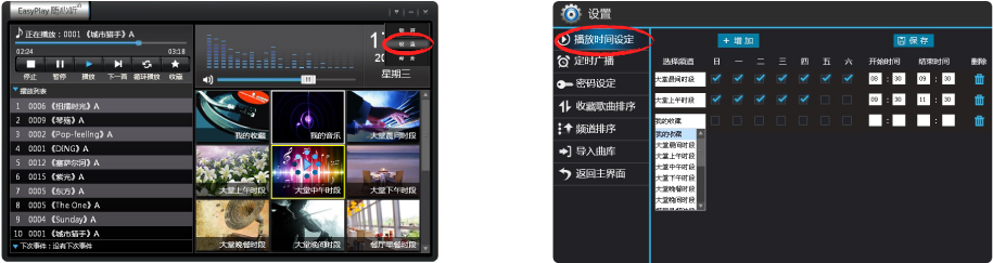 将您的环境音乐播出细化到每一天的每一分钟,瑞迪欧会在初次上门时为您设定好,当然您完全可以自行更改。