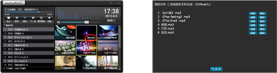 您可将自有的音频文件(如迎宾打烊、品牌宣传、促销信息等)存储到这个频道中,Easyplay随心听会帮您将这些声音完美的融入环境音乐中。